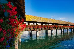 As you look out onto the town, steeped in spectacular architecture, make sure to also look up at the pristine paintings covering the ceiling. Telling a story of Lucerne’s rich history, and dating back to the 17th century, these murals were created by local artist Hans Heinrich Wägman and make crossing this wooden bridge a truly unique experience. Charmingly bedecked with vibrant flowers along its full extent, it is a premier attraction in the city.