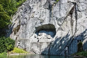 The Lion Monument in Lucerne is spectacularly carved directly into the walls of a large sandstone quarry and tells a story of important Swiss history. Designed by Danish sculptor Bertel Thorvaldsen in 1820, the monument is a memorial to the Swiss soldiers who lost their lives during the French Revolution. Above the lion is an inscription that reads, “HELVETIORUM FIDEI AC VIRTUTI,” which translates as “To the loyalty and bravery of the Swiss”.