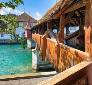 Chapel Bridge is Lucerne’s most famous landmark. Built initially as a way to link the Old Town on the north bank of the Reuss river to the new town perched on the south bank, Chapel Bridge is a one-of-a-kind wooden walkway serving as the symbol of Switzerland. It’s also Europe’s oldest covered bridge and the world’s oldest surviving truss bridge.