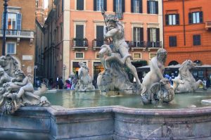 The Fountain of Neptune is a well-known fountain in Piazza Navona, one of the most famous squares in Rome. The fountain was designed by the Italian architect and sculptor Gian Lorenzo Bernini in the 16th century.