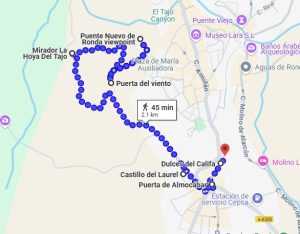 –>continue along the path for amazing views of the valley –> Murallas de la Cijara –> Murallas Del Carmen –-> Puerta de la Cijara –> Aquas de Ronda –> Banos Arabes Yacimeinto