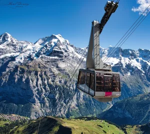 Once in Mürren, it is a 10-minute walk to the cable car station. From Mürren, take the cable car to Birg and then continue on to Schilthorn.